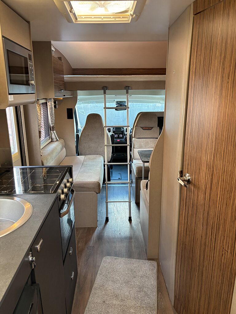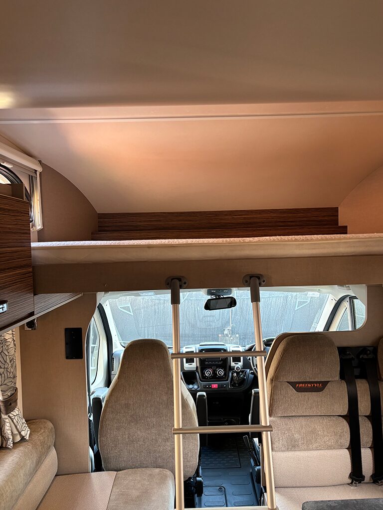 Our impressive 3.5-tonne motorhome is available for hire year-round, with a minimum of 5 days in winter and 7 days during peak season. due to its weight a C1 driving licence is required to drive this vehicle. For insurance purposes, drivers must be over 25 with at least 2 years of experience operating a comparable vehicle. Small pets are permitted—please confirm when booking. This 6-berth motorhome includes 6 seatbelts, though we suggest it’s most comfortable for 2 adults and 2 children, depending on your preference.